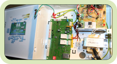 csatlakoztatott GSM modullal SMS riasztást küld, illetve a központi szoftver szerver
